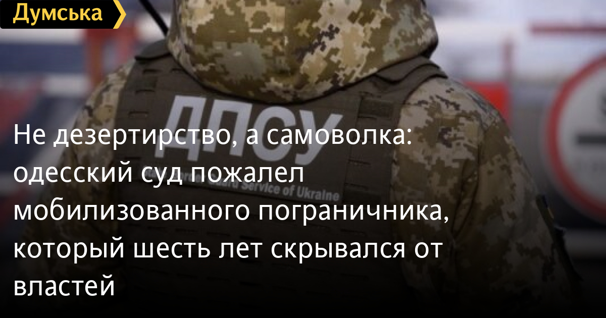 Виновным в самовольном оставлении части или места службы на срок больше месяца (часть 3 ст. 407 УК Украины) признал Приморский районный суд Одессы мобилизованного сотрудника Госпогранслужбы Геннадия А., который 16 декабря 2014 года не явился на лечение в военно-медицинский клинический центр ГПСУ на улице Черняховского и скрывался от властей до 4 марта 2021 года, то есть больше шести лет.