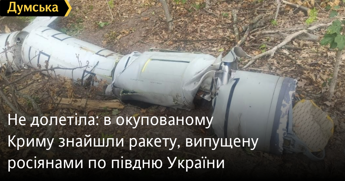 Йдеться про «Калібр». Ракету виявив у лісі біля села Вулканівка Єдукийського (Ленінського) району АРК місцевий пастух.