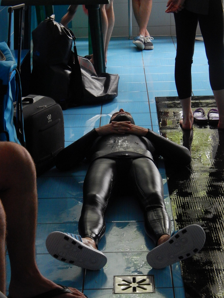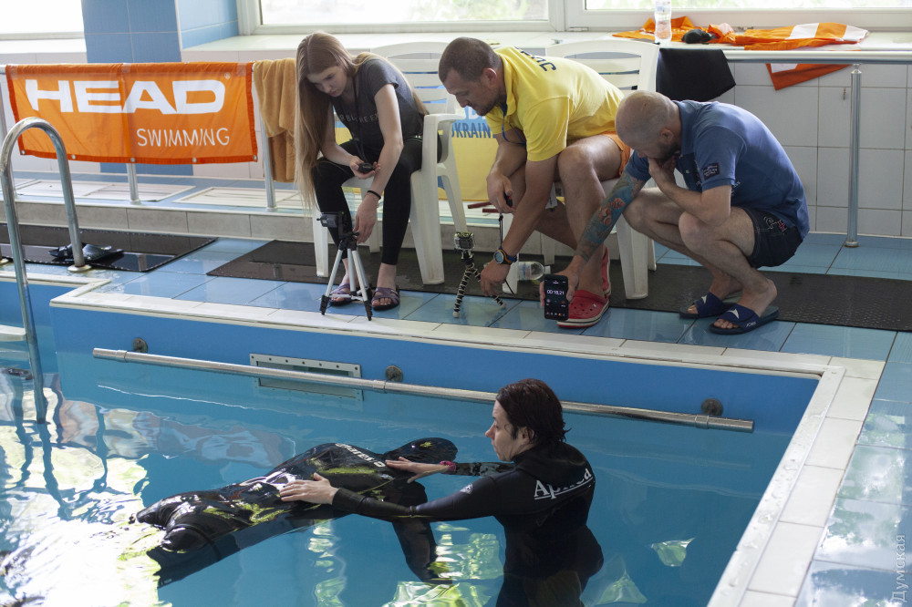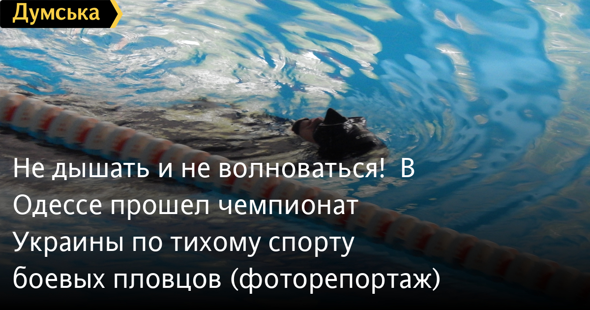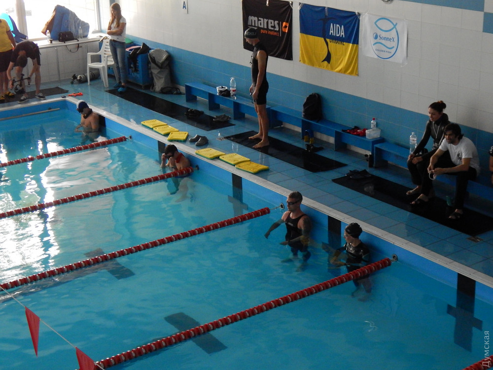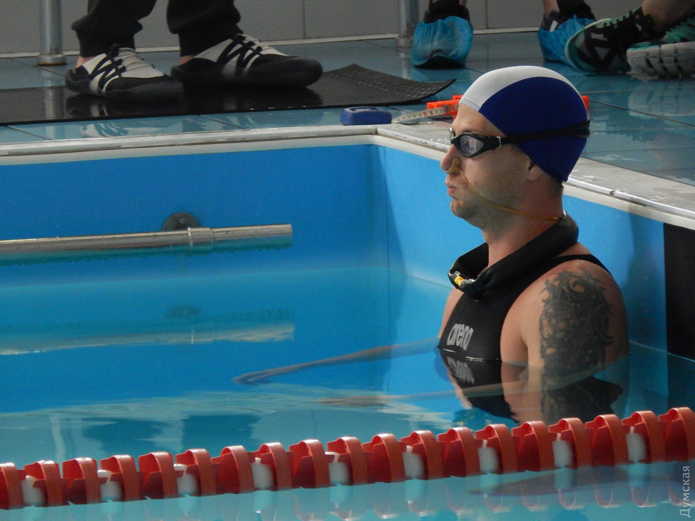 Корреспондент «Думской» Дмитрий Жогов побывал на чемпионате Украины по бассейновым дисциплинам фридайвинга – свободного ныряния. Там было очень интересно! С этим видом спорта мы знакомы с детства. Помните, в «Двадцати тысячах лье под водой» был бедный ловец жемчуга, который зажимал ногами тяжелый камень и нырял на глубину? Он собирал раковины и находился под водой необычайно долго. И тут на него нападала акула! А капитан Немо спасал бедолагу! На море мы, мальчишки, все играли в ловцов жемчуга. Выпучивая глаза и набрав воздуха в щеки, погружались под воду и таращились на отшлифованные водой круглые осколки стекла, осторожных крабов и замерших в песке бычков. В ушах шумело и булькало, и рекорд нахождения под водой, помнится, был секунд сорок. И мы знать не знали о таком звере, как фридайвинг! ВСЕ ГЛУБЖЕ, ГЛУБЖЕ И ГЛУБЖЕ! Фридайвинг, то есть «свободное ныряние», — подводное плавание с задержкой дыхания. Еще в 1949 году итальянский фотограф на спор нырнул на 30 метров. Его рекорд побили в 1960, нырнув уже на 49 метров. А в 1976 — и на 105 метров. Фридайвинг можно назвать экстремальным видом спорта. Когда смотришь на ныряльщиков, то в голове всплывают всякие опасные слова вроде «декомпрессии». А вы знаете, что при погружении иной раз пломбы из зубов выскакивают!? Но человек рвется на глубину, как и в небо. Его манит опасность и красота. И на глубине есть из-за чего рисковать. САМЫЙ ТИХИЙ ВИД СПОРТА В Одессе прошел чемпионат Украины по бассейновым дисциплинам фридайвинга. Это, конечно, не так зрелищно, как фридайвинг в океане. Там фигурки людей зависают в голубой бездне, как в одноименном фильме Люка Бессона, наедине с величием океана. Тут все прозаичнее. И тут тихо. Только кровь шумит в ушах пловцов. Самый тихий вид спорта! За исключением разве что шахмат. Когда заходишь в бассейн и попадаешь в разгар соревнований, то сперва ошарашенно замираешь. Тихо. Ни аплодисментов, ни рева болельщиков. Тихий всплеск, и тишина. Только один человек лежит плашмя на краю бассейна. Отдыхает. А потом присматриваешься — вот оно что! Под водой скользят пловцы. Вдоль бортика бассейна быстро идут судья и оператор. Спортсмен раз проплыл под водой всю дорожку, второй раз. Насколько же его хватает?! Наконец пловец выныривает — это девушка, — и хватает воздух ртом. Ей кричат: «Лена, дыши! Дыши!». Александр Бубенчиков, вице-чемпион и рекордсмен мира по фридайвингу: - Спортсмены сейчас выступают в дисциплине «динамика» без ласт. Необходимо проплыть на одном вдохе как можно дольше, не используя ласт. Фридайвер Владимир объясняет, кивая на лежащего мужчину с отрешенным выражением лица: - Это человек лежит, расслабляется перед заплывом. Самое главное не нервничать. Должно быть антистрессовое состояние. Беззвучное скольжение пловцов под водой напоминает мне фильм о человеке-амфибии или про диверсантов. - Такие навыки необходимы для боевых пловцов, — говорит Александр Бубенчиков. — И фридайвинг используется в подготовке бойцов как в Украине, так и за границей. Это тихий вид спорта и не очень зрелищный для тех людей, которые не понимают, в чем суть. Потому как основная борьба, основные события развиваются внутри спортсмена. Все эмоции, переживания и усилия, которые прикладывает спортсмен, они происходят внутри. Но те люди, которые знают, в чем суть, для них это весьма зрелищно. В этом чемпион