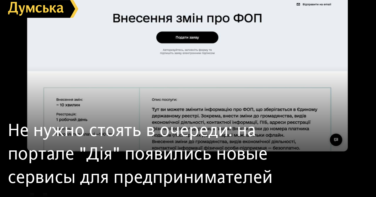 Как сообщает пресс-служба ведомства, теперь ФЛП может внести изменения в фамилии, имени, отчестве и местонахождении онлайн.
