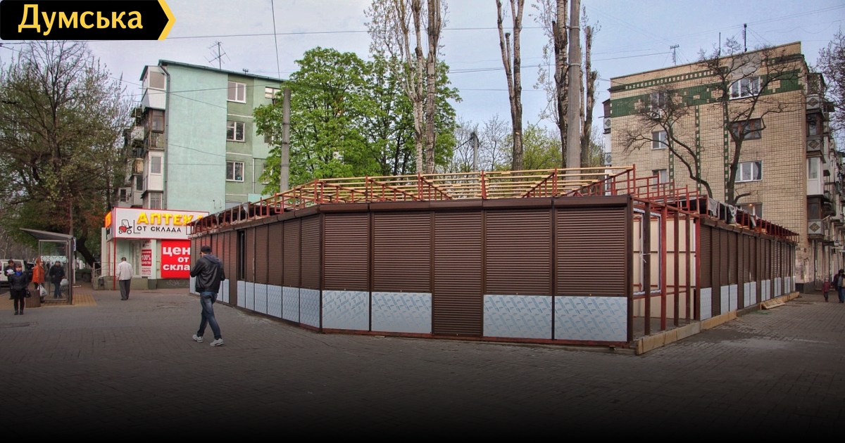 какое уродство(( там было тех 5 будочек и не сильно шибко торговля в них шла.. а сейчас на хрена изуродовали перекресток?ради пустующих шарашек?или там наливайки планируют?