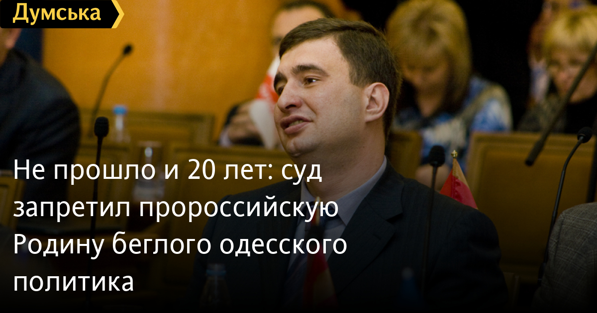 Не минуло й 20 років: суд заборонив проросійську «Родину» одеського політика-втікачаРозпустити проросійську громадську організацію «Родина» одеського екснардепа-втікача Ігоря Маркова, що переховується у рф, вирішив окружний адмінсуд. Нещодавно він задовольнив позов регіонального управління Міністерства юстиції, передає кореспондент «Думської». Майно об'єднання, його кошти та інші активи, якщо такі є, звернуть у дохід держави. Відомство зазначило, що отримало лист із СБУ, в якому обґрунтовується антиукраїнський характер діяльності «Родини», самого Ігоря Маркова та співзасновника організації, бойовика і колишнього депутата облради Вадима Савенка на прізвисько Сват, який із 2014 року воював на боці так званої «днр». Відзначається, що ці діячі фігурують у низці кримінальних проваджень, відкритих за статтями про державну зраду, виправдання агресії, пропаганду війни, тероризм і посягання на територіальну цілісність і недоторканність України. Однойменну партію «Родина», яку до 2020 року очолював Марков, політик продав. Вона якимось чином пройшла перереєстрацію, змінила юридичну адресу на дніпровську і зараз іменується Партією Сергія Суханова. Суханов — місцевий підприємець, колишній депутат Дніпровської міськради. СМЕРТЬ РОСІЙСЬКИМ ОКУПАНТАМ! Помітили помилку? Виділяйте слова з помилкою та натискайте control-enter