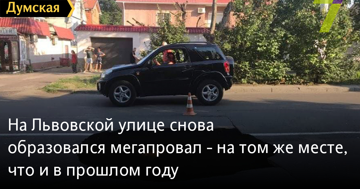 Не прошло и года, как на улице Львовской прямо на проезжей части произошел мегапровал. Яма, диаметром больше двух метров, образовалась ровно на том же месте, что и в октябре 2017 года.