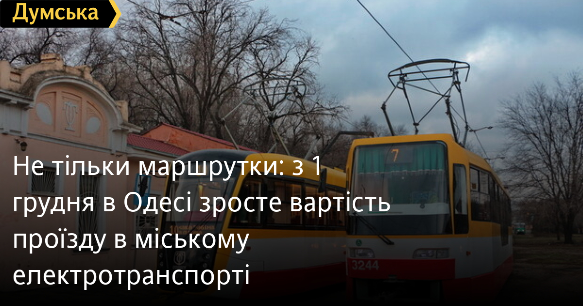 Не тільки маршрутки: з 1 грудня в Одесі зросте вартість проїзду в міському електротранспорті