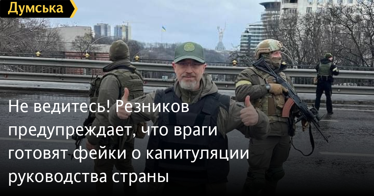 Не ведитесь! Резников предупреждает, что враги готовят фейки о капитуляции руководства страныМинистр обороны Украины Резников Алексей обратился к украинцам и рассказал, что по имеющимся данным, российские оккупанты готовятся в ближайшее время запустить масштабную информационно-психологическую операцию. С помощью лжи враги хотят сломить сопротивление украинского народа и украинской армии. «Сначала они планируют устроить перебои связи. После этого будут массировано вброшены фейковые сообщения о том, что украинское военно-политическое руководство якобы согласилось на капитуляцию», — отметил Резников. Для «подтверждения» этого фейка будут распространяться якобы подписанные «документы», а также смонтированные фейковые видеоролики. «ЭТО ЛОЖЬ. Не дождутся! Никакой капитуляции не будет! Только победа! Многие, кто рассчитывал взять Киев за 2-3 суток, уже в аду», — завил министр обороны Украины. СМЕРТЬ РОССИЙСКИМ ОККУПАНТАМ! Заметили ошибку? Выделяйте слова с ошибкой и нажимайте control-enter |