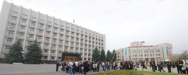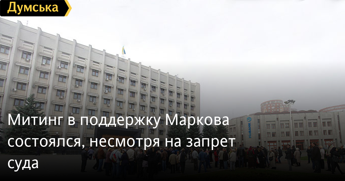 Около сотни сторонников арестованного экс-нардепа Игоря Маркова все-таки собрались сегодня у здания облгосадминистрации.