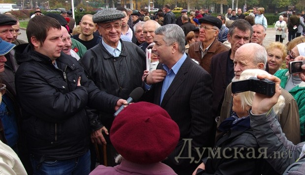 Как передает корреспондент «Думской», большинство из них - пожилые люди, которые не скрывают, что на самом деле являются активистами ПСПУ. Но были и некоторые «родинцы», в частности, депутаты Сергей Бовбалан и Григорий Кваснюк (остальные лидеры политсилы, как мы уже писали, подались в бега). Они в очередной раз рассказали журналистам о происходящем беззаконии и благодарили людей за поддержку.