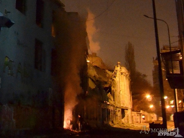 Как сообщает издание «Южный Курьер», из горящих руин обрушившегося накануне здания выбежали трое мужчин и скрылись, что дает основания предполагать поджог.