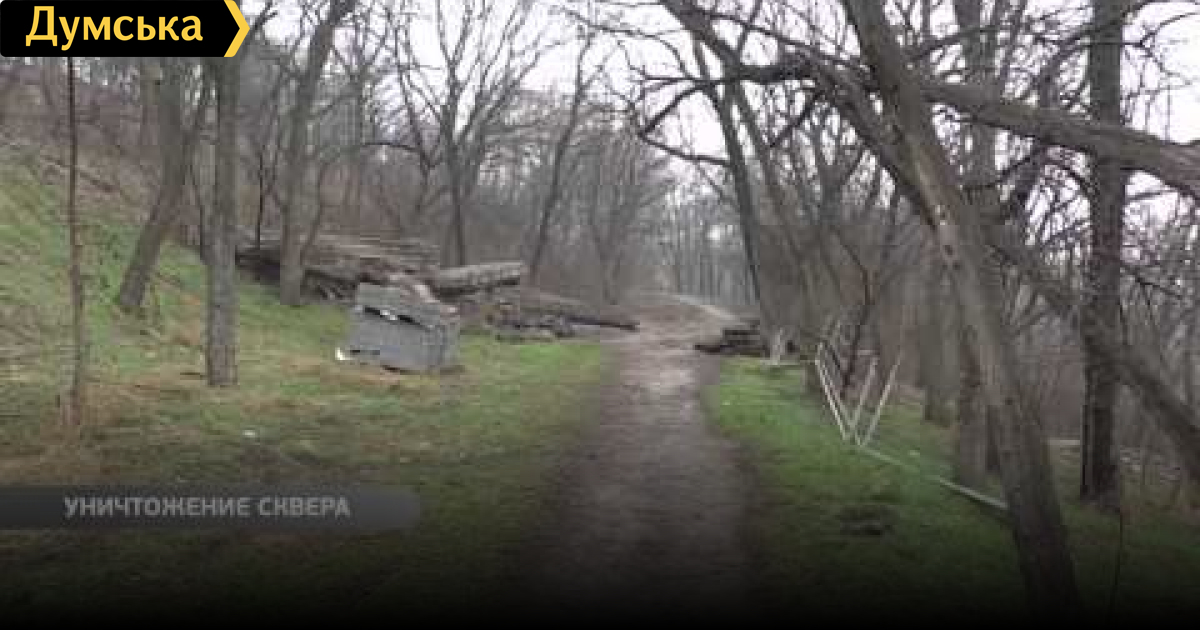 Неизвестные уничтожили часть сквера в переулке Дунаева.