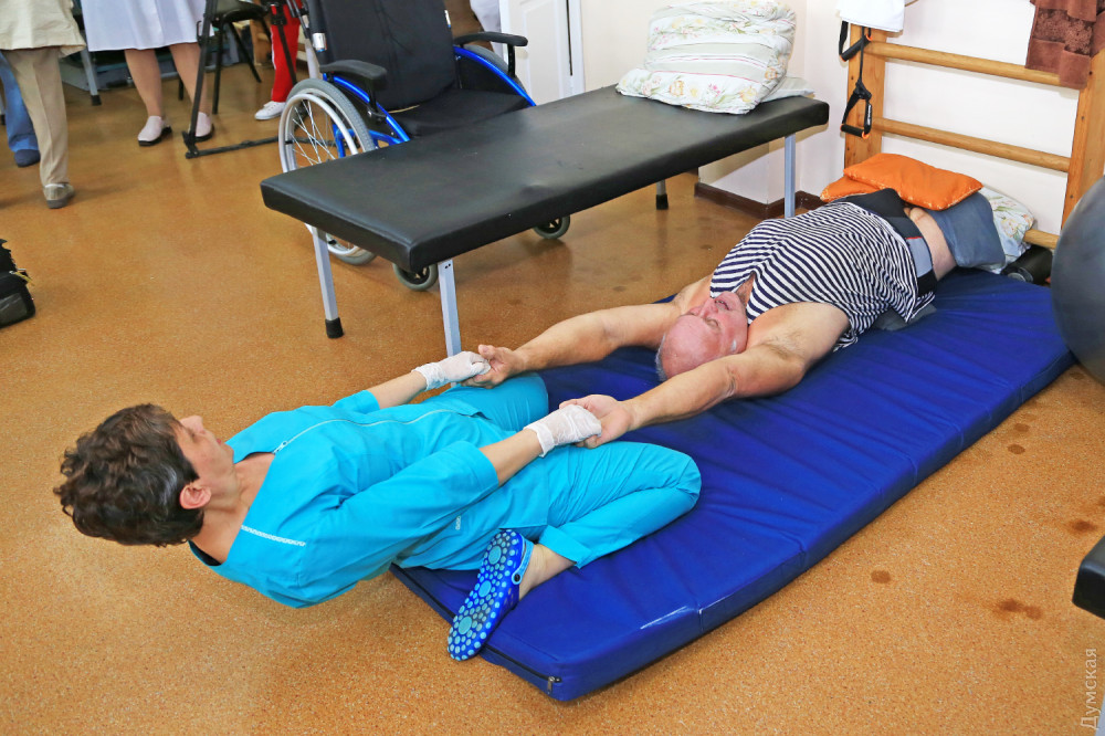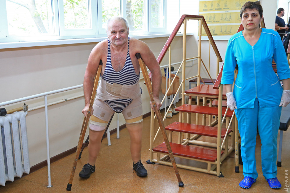 На третьем этаже комплекса находится стационар, где лечатся, проходят реабилитацию и учатся жить с протезами мужчины и женщины, по разным причинам лишившиеся рук и ног. Возраст в основном послепенсионный. Один из пациентов в результате ампутации остался без обеих ног, но не теряет оптимизма. Врачи и медсестры рассказывают, что Виктор Кравченко очень волевой человек – ежедневно по несколько часов тренируется и твердо верит, что через пару месяцев с помощью искусственных ног сможет самостоятельно передвигаться. Первые шаги с костылями он делает и сейчас, но по выступающей на лице испарине заметно, с каким трудом дается такая тренировка. Он не сдается, тем более, что в стационаре есть пример для подражания. Одессит Рафик Османов тоже остался без обеих ног, но за прошедшие два десятилетия научился ходить и, по его словам, даже забывает, что вместо ног протезы.