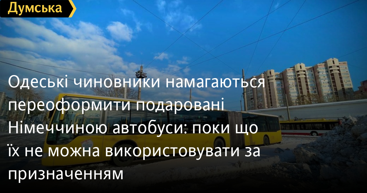 Одеські чиновники намагаються переоформити подаровані Німеччиною автобуси: поки що їх не можна використовувати за призначеннямАвтобуси «Мерседес», подаровані Одесі містом-побратимом Регенсбургом, не можна використовувати в комерційних цілях. Інформацію, яку раніше повідомили наші джерела, офіційно підтвердив мер Геннадій Труханов під час засідання сесії міської ради, передає кореспондент «Думської». За його словами, з такою ж юридичною проблемою зіткнулися й інші українські міста. «Партію автобусів ввезли як гуманітарну допомогу, проте з таким статусом їх не можна використовувати для платних перевезень. Ми намагалися розмитнити їх, але зіткнулися з проблемами. І зараз контактуємо з профільним міністерством, щоб вирішити це принципове для нас питання. Це дуже важливо, оскільки Туреччина обіцяє нам тридцять автобусів, але без вирішення проблеми ми не зможемо їх використовувати», — зазначив мер. Неважливо йдуть справи і з новим багатосекційним трамваєм від компанії «Татра» — він також нудиться в депо. Виявилося, що на деяких ділянках він фізично не може проїхати через технічні перешкоди. Наразі департамент транспорту, зв'язку та організації дорожнього руху веде робочі переговори з виробником, а також займається адаптацією зупинкових комплексів. Як ми вже писали, місто-побратим Регенсбург подарувало Одесі десять 17-метрових автобусів «Мерседес». Щонайменше шість із них уже прибули в наше місто. Спочатку планувалося, що нові автобуси працюватимуть на новому маршруті №141, який зв'яже центр міста (Преображенська/Пастера) із селищем Котовського (вул. Паустовського). СМЕРТЬ РОСІЙСЬКИМ ОКУПАНТАМ! Помітили помилку? Виділяйте слова з помилкою та натискайте control-enter