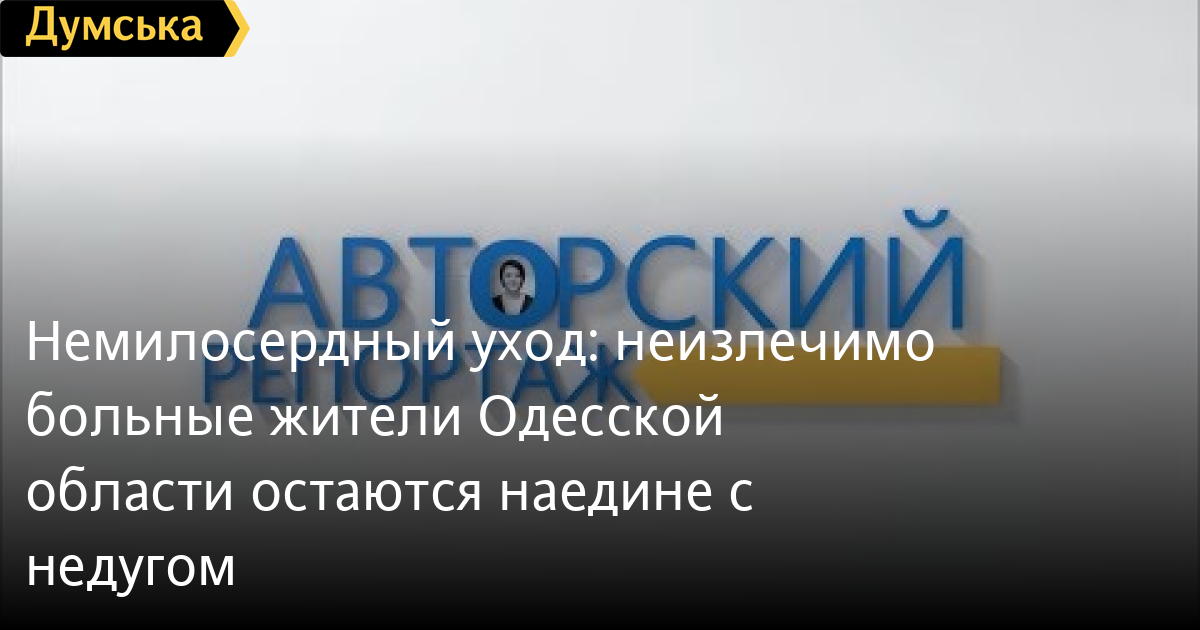 Немилосердный уход: неизлечимо больные жители Одесской области остаются наедине с недугомСтены пожирает плесень, штукатурка валится на головы. Трудно поверить, но вся эта обстановка — в месте, которое власти Сергеевки выделили для создания центра паллиативной помощи. В помещениях, покрытых мхом и трещинами, должны заниматься неизлечимо больными детьми. Как рассказала жительница Сергеевки Оксана Петруняк, которая воспитывает больного ребенка, она неоднократно писала в поселковый совет с просьбой выделить помещение. В итоге, власти отдали здание в аварийном состоянии. Отремонтировать его вызвались благотворители. «Нашлись даже спонсоры, но они поставили достаточно нормальные условия: должна быть долгосрочная аренда, а арендатор, который снимает помещение на втором этаже, должен привести в порядок стены перед капремонтом, но тот оказывается»,- говорит женщина. С самим съемщиком второго этажа связаться не удалось. Его родственники от комментариев СМИ отказываются. Тем временем в поссовете журналистов заверили: в ближайшее время проблему решат и помещение для нужд больных детей можно будет ремонтировать. В Одессе ситуация с паллиативной помощью — не лучше. Во всем регионе пока не создано ни одного хосписа. Столкнувшихся со смертельным или неизлечимым диагнозом просто отправляют домой. Родные пациентов считают, что хосписная помощь – давно назревший вопрос. А вот у чиновников на этот счет свое мнение. «Хоспис – это система интеллигентного, культурного и уважительного умирания. В нашей структуре хосписа быть не должно. Они имеются в структуре онкопомощи. Поэтому город хоспис бюджетный сделать не может»,- говорит заместитель директора департамента здравоохранения Одесского городского совета Ирина Соколова. Чиновница обещает, что в больницах будут разворачивать паллиативные койки. Однако на бумаге они существуют уже давно. Всего в регионе их около двухсот. Но они не обеспечены протоколами и финансированием, для них нет специального оборудования. Таким образом это просто название в меджурнале. «У нас есть деньги по 150-200 тысяч в обл- и горсоветах, чтобы выделять на представительские услуги – покупку цветов, подарков, на встречи каких-то делегаций. При этом 28 тысяч больных из области умирают в нечеловеческих условиях»,- говорит Юрий Жогло — активист, который работает с паллиативными больными с 2012 года. Сейчас общественники готовят программу развития паллиативной помощи. Они опасаются, что в этом году на нее снова не выделят деньги из областного бюджета. Пару лет назад они своими силами создали выездную службу для неизлечимых детей. Тогда не хватило всего 150 тысяч гривен на автомобиль, чтобы волонтеры были мобильны. Службу пришлось закрыть. «Есть такой «индекс качества смерти», он говорит о том, где лучше умереть, в какой стране. Так вот: лучше всего умереть в Англии, а в Европе хуже всего умереть в Украине. При этом единственная область, в которой нет никакой паллиативной помощи, это Одесская. То есть мы на самом дне», — рассказывает Юрий Жогло. Отметим, в Ивано-Франковске, Харькове, Полтаве, Ровно и других городах Украины о паллиативных больных уже профессионально заботятся. В Одесской области такой помощи до сих пор нет. Автор Диана Хрущева СМЕРТЬ РОССИЙСКИМ ОККУПАНТАМ! Заметили ошибку? Выделяйте слова с ошибкой и нажим