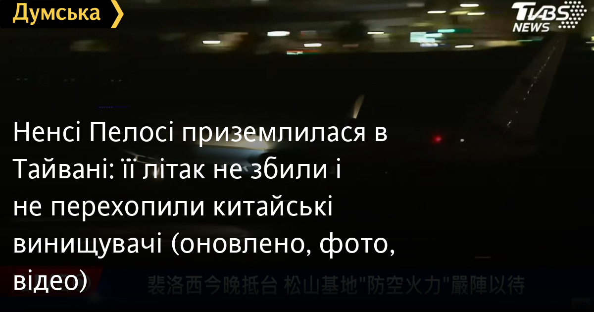 Літак військово-повітряних сил США SPAR19 зі спікером палати представників Конгресу Ненсі Пелосі успішно приземлився в аеропорту столиці Тайваню Тайбея близько 17:40.