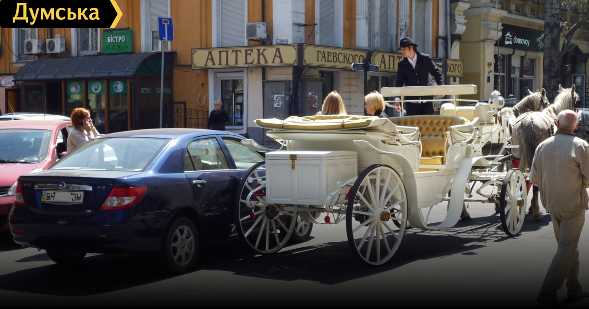 Необычное ДТП: в Одессе карета наехала на автомобиль