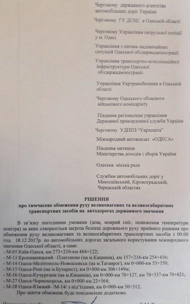 Автодороги международного значения в Одесской области временно закроют для большегрузного и крупногабаритного транспорта.