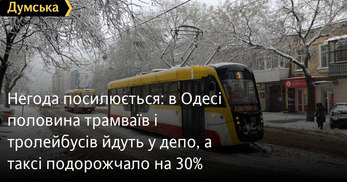 Негода посилюється: в Одесі половина трамваїв і тролейбусів йдуть у депо, а таксі подорожчало на 30%Половина рухомого складу «Одесміськелектротрансу» залишає маршрути і йде в депо. Про це повідомляє пресслужба Одеської міської ради. Таке рішення ухвалили у зв'язку з погіршенням погодних умов — наразі температура поступово падає, а це значить, що за істотного похолодання дроти замерзнуть, і тоді транспорт потрапить у пастку і залишиться на лінії. Такі випадки неодноразово траплялися в Одесі в попередні роки під час зимових стихій. Таким чином, інтервали в роботі електричного транспорту стануть ще більшими. Це слід врахувати під час планування пересувань. При цьому, як передає кореспондент «Думської», деякі тролейбуси, які залишилися на маршруті, не беруть пасажирів. Машини рухаються дуже повільно, що, за словами водіїв, пов'язано з обмерзанням проводів, яке почалося. ОНОВЛЕНО О 15:00. Читачі «Думской» повідомляють, що служби таксі вже підняли розцінки — у середньому на 30%. До вечора вартість послуги може підвищитися ще більше. СМЕРТЬ РОСІЙСЬКИМ ОКУПАНТАМ! Помітили помилку? Виділяйте слова з помилкою та натискайте control-enter |