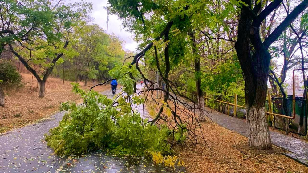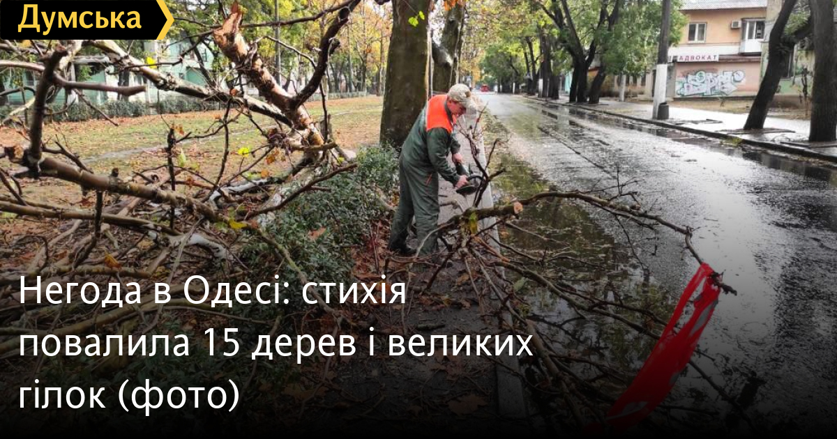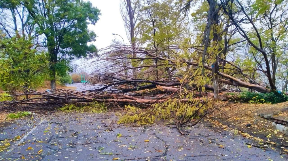 Дев'ять дерев і шість великих гілок повалив сильний вітер в Одесі станом на 14:00.