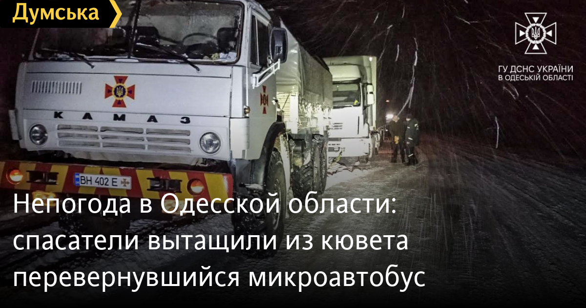Негода на Одещині: рятувальники витягли з кювету мікроавтобус, що перекинувсяРятувальники Подільського району надали допомогу водіям, чиї транспортні засоби застрягли на дорозі через ожеледицю. Як повідомили в обласному управлінні ДСНС, біля села Бокове водій вантажного мікроавтобуса з'їхав із дороги та перекинувся. Рятувальники витягли автомобіль на проїжджу частину. У Подільську зі снігової пастки визволили ще дві автівки, а в селі Нестоїта допомогли застряглій кареті швидкої допомоги, яка доправляла в лікарню двомісячного хлопчика. За словами керівника обласної військової адміністрації Олега Кіпера, проїзд дорогами області під час негоди забезпечують 169 одиниць спецтехніки. Помітили помилку? Виділяйте слова з помилкою та натискайте control-enter Новини по цій темі: 7 листопада 2025: До +16, але з дощами: в Одесі прогнозують погіршення погоди 29 жовтня 2025: Котельні готові: Одеса увімкне опалення за два тижні, а початок листопада буде аномально теплим 6 жовтня 2025: Через погіршення погоди школи та садочки Одеської області переводять на дистанційне навчання 1 жовтня 2025: Катастрофа, яку можна було попередити (блог) |