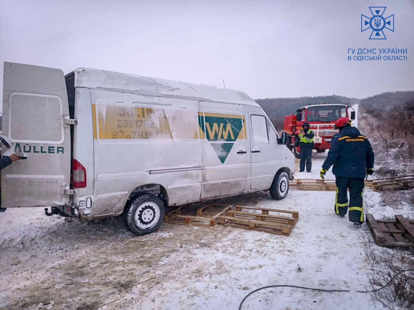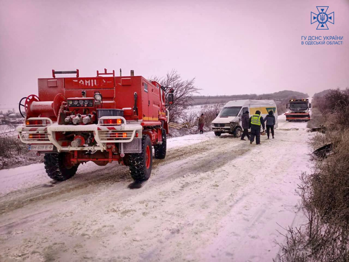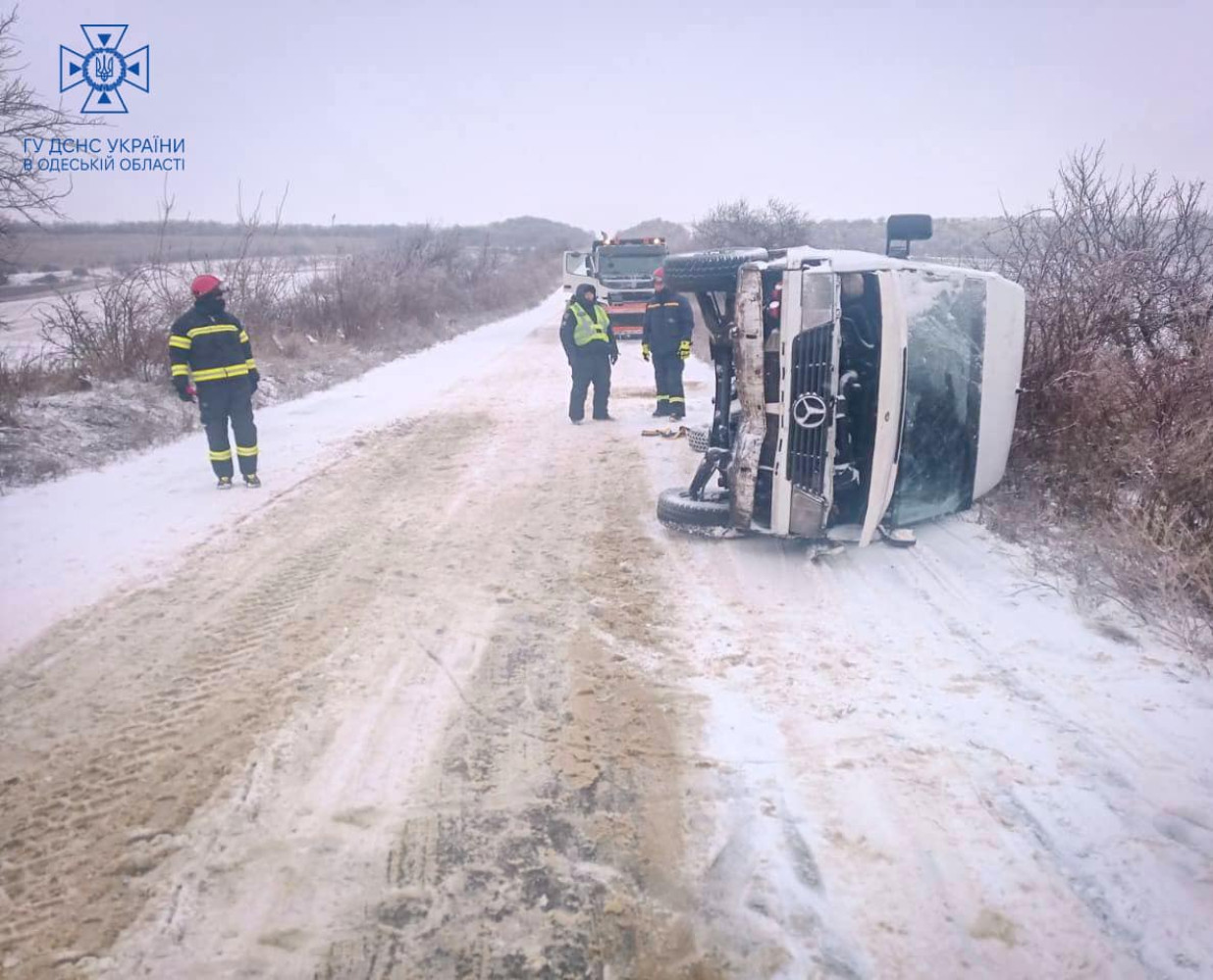 Негода на Одещині: рятувальники витягли з кювету мікроавтобус, що перекинувся