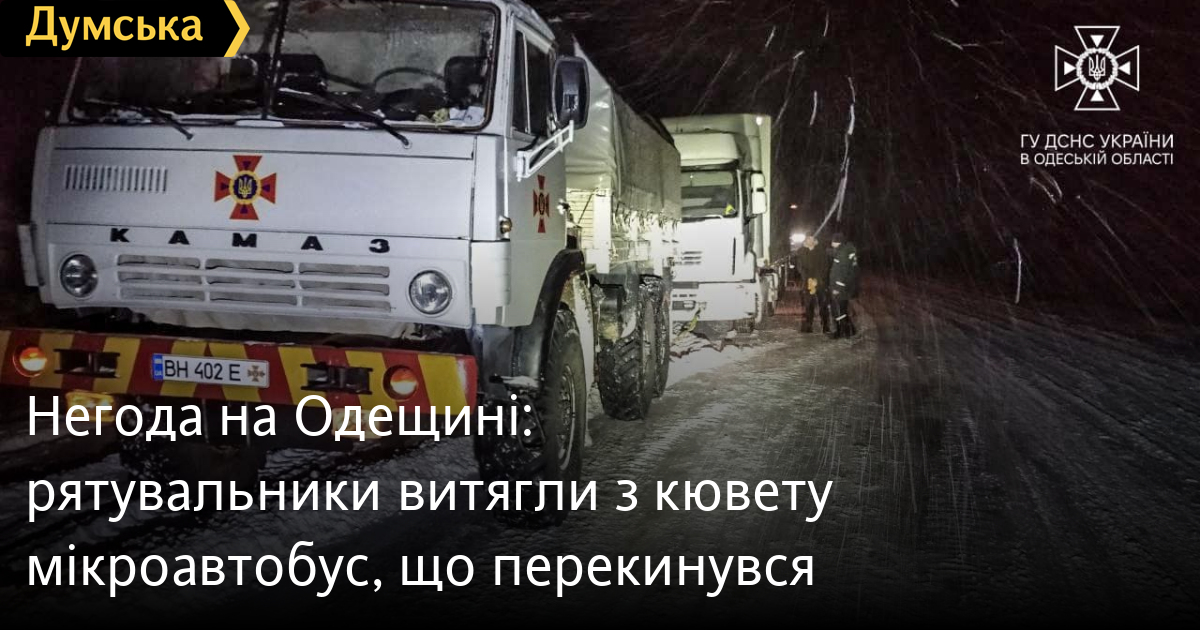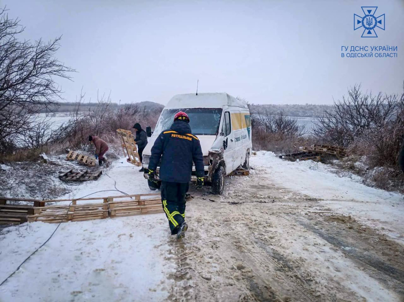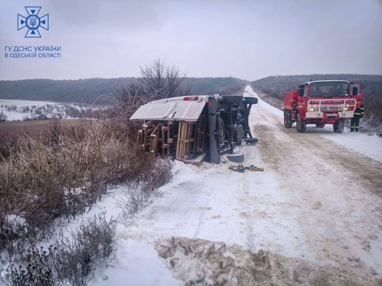 Негода на Одещині: рятувальники витягли з кювету мікроавтобус, що перекинувся
