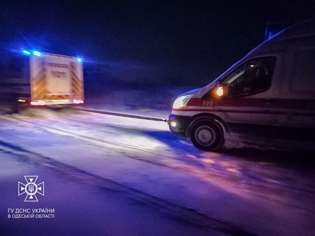 У Подільську зі снігової пастки визволили ще дві автівки, а в селі Нестоїта допомогли застряглій кареті швидкої допомоги, яка доправляла в лікарню двомісячного хлопчика.