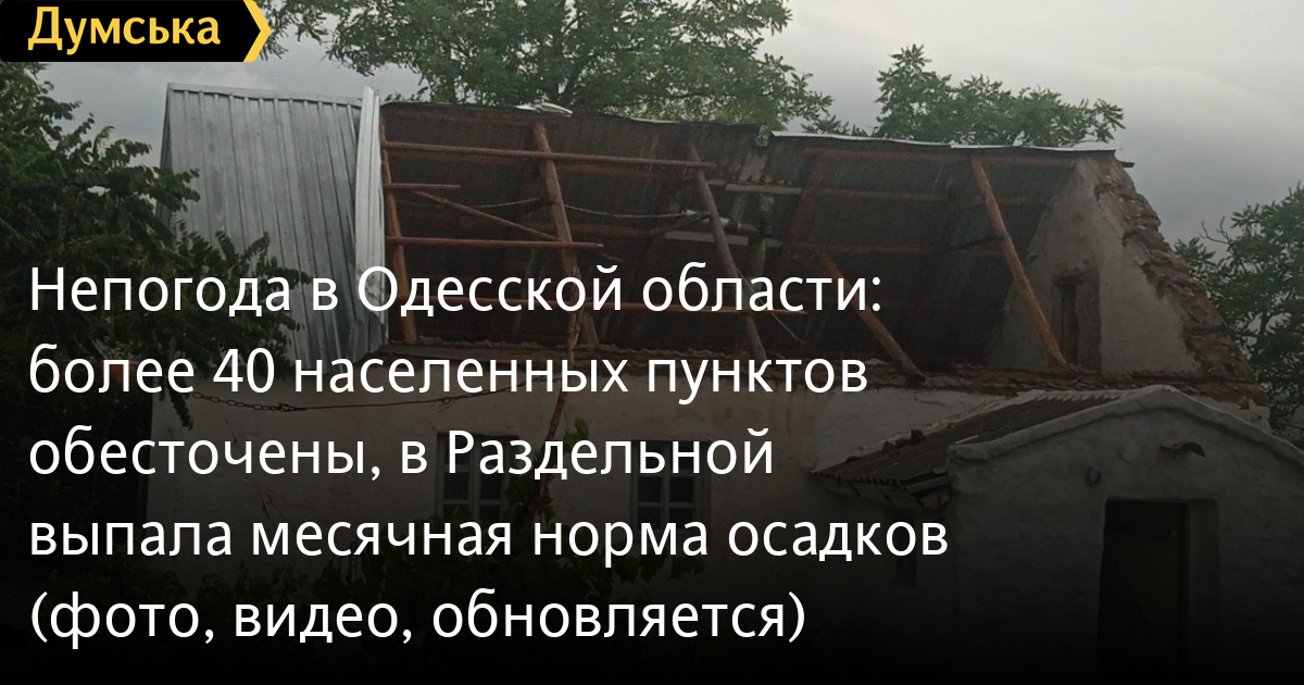 Негода в Одеській області: понад 40 населених пунктів знеструмлені, у Роздільній випала місячна норма опадів (фото, відео)Понад 40 населених пунктів Одещини залишаються знеструмленими через негоду, більш ніж сотня — вже зі світлом. Як заявляють в ДТЕК, найбільше постраждав Одеський район. «За минулу добу, 7 липня, ми повернули світло в 113 населених пунктів області для 35 325 родин, що залишилися без електропостачання через негоду. Станом на 8:30 сьогодні, 8 липня, без світла тимчасово залишається 41 населений пункт, із них 3 — частково. Найбільше постраждав Одеський район. Енергетики вже відремонтували 28 повітряних ліній, що живлять 804 трансформаторних підстанції. Наразі лагодять мережі 34 бригади, а це - 101 фахівець та 35 одиниць техніки. У Роздільній, при місячній нормі опадів 63 мм, за добу випав 61 мм. ОНОВЛЕНО ОБ 11:00. На трасі Одеса-Мелітополь-Новоазовськ, біля села Іванове через велику кількість опадів сталося руйнування перехідної плити мосту. Як повідомили у Службі відновлення та розвитку інфраструктури в Одеській області (колишній облавтодор), аварійну ділянку вже огородили та встановили відповідні дорожні знаки. ОНОВЛЕНО О 12:30. Енергетики повернули світло ще в 13 населених пунктів області. Станом на 12:00 без світла залишаються ще 28 міст і сіл, з них 3 - частково, повідомили в ДТЕК. СМЕРТЬ РОСІЙСЬКИМ ОКУПАНТАМ! Помітили помилку? Виділяйте слова з помилкою та натискайте control-enter |