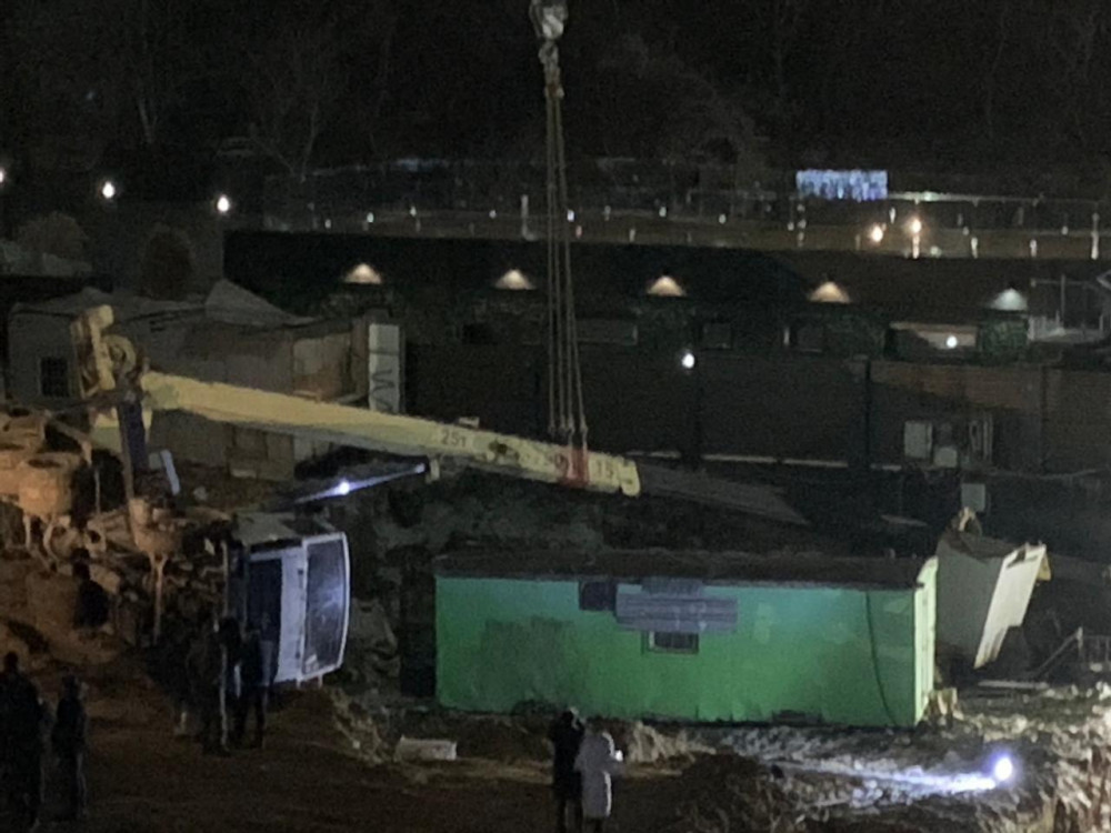 По состоянию на 23:30 12 января упавший кран удалось сдвинуть, и тело увезли со стройплощадки.