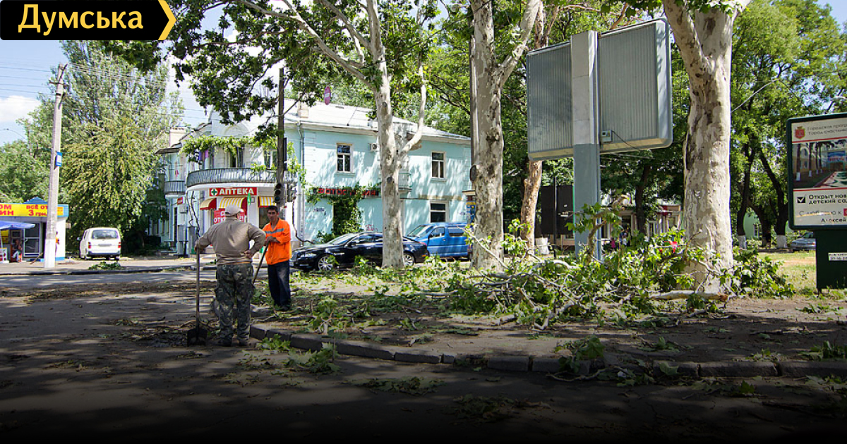 на посёлке Котовского упали в ряд 5 огромных тополей. которые росли по периметру детского сада. сетчатый забор проломан и покорёжен. во дворах деревья падали на машины. под нашим окном упал орех. мы с мужем попали, как раз, в самый ураган и ливень, возвращались из Крыжановки с пикника. моя мама с ума сходила, дожидаясь нас. я сегодня утром шла, это кошмар. всё завалено.