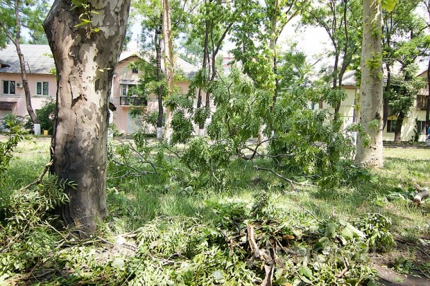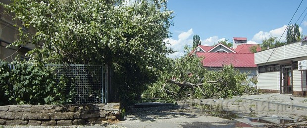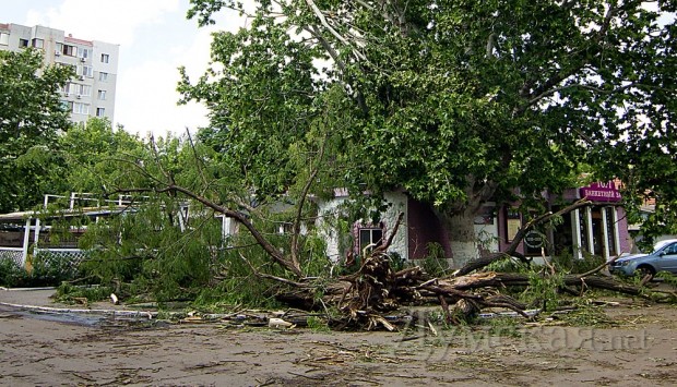 на посёлке Котовского упали в ряд 5 огромных тополей. которые росли по периметру детского сада. сетчатый забор проломан и покорёжен. во дворах деревья падали на машины.