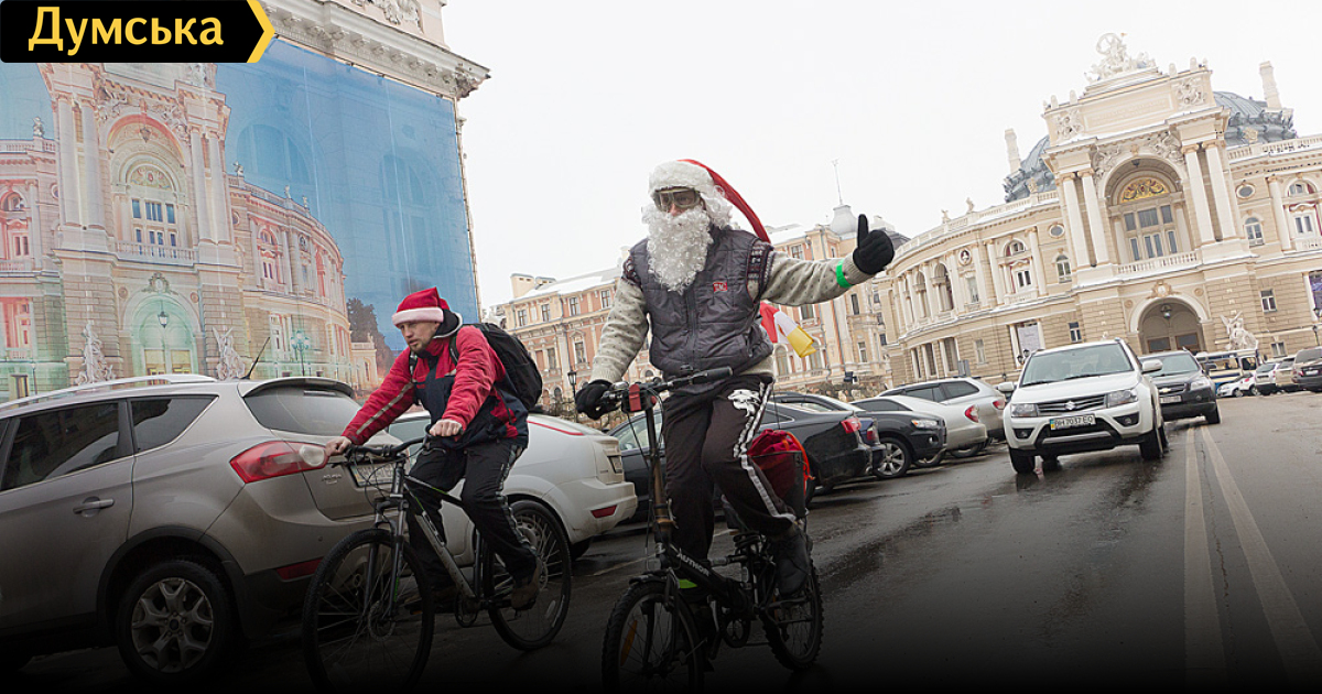 Несмотря на гололед, велопробег Дедов Морозов в Одессе состоялся