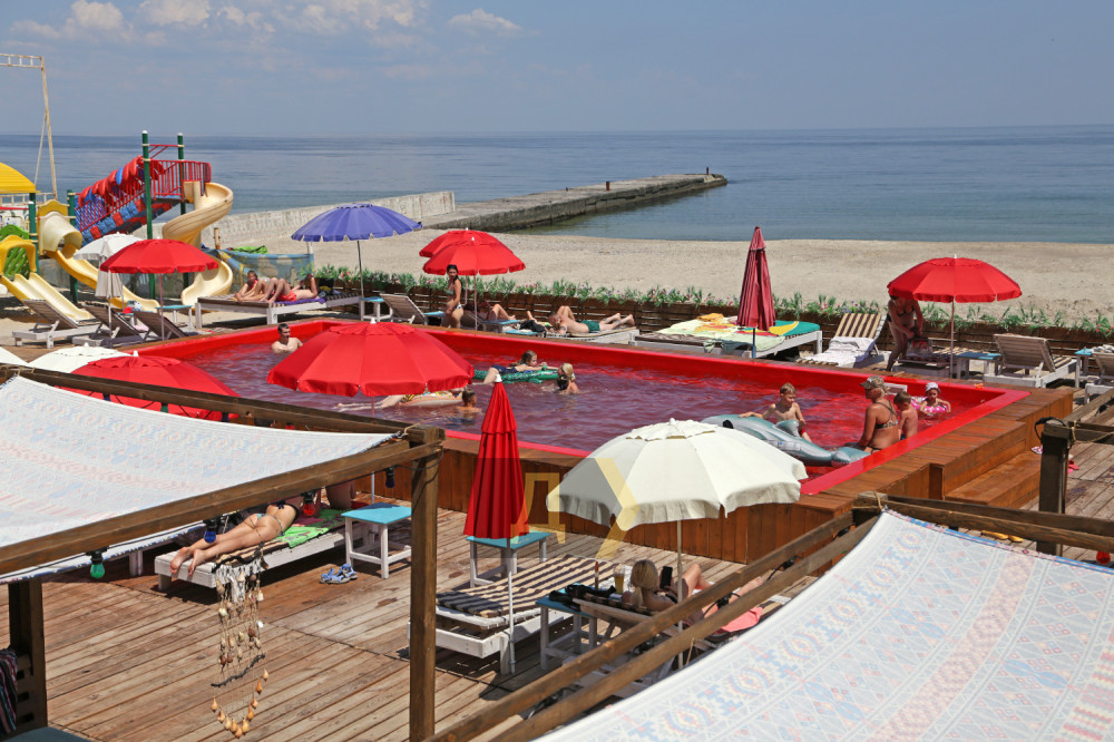 Некоторые заведения на Большом Фонтане предложили одесситам разумную альтернативу морю. Конечно, идея большого бассейна посреди шезлонгов не нова, и некоторые одесские клубы в районе Аркадии давно предлагают посетителям такую услугу. Но в этом сезоне из-за запретов морских купаний искусственные водоемы установили и владельцы многих других заведений.