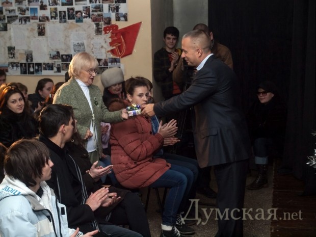 Место для отчета выбрано неслучайно — супруга Павла Серебреника закончила это училище. А сейчас депутат подготавливал «общагу» к зиме, заменив большую часть окон на металлопластиковые стеклопакеты. Студенты в свою очередь подарили Серебренику две картины с видами Одессы.