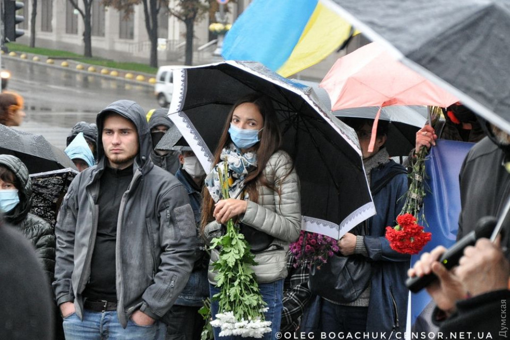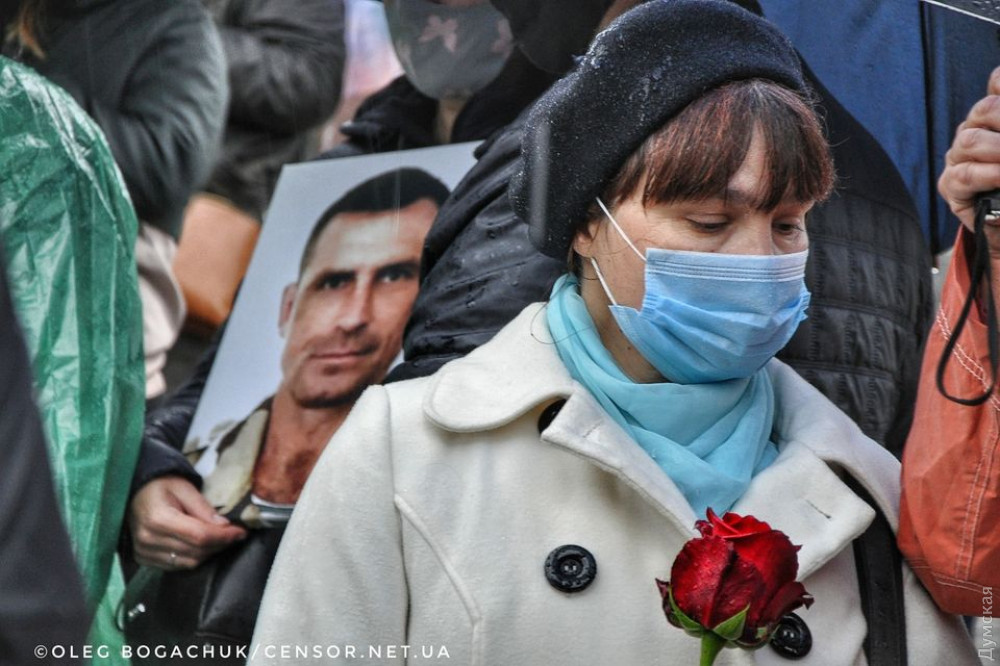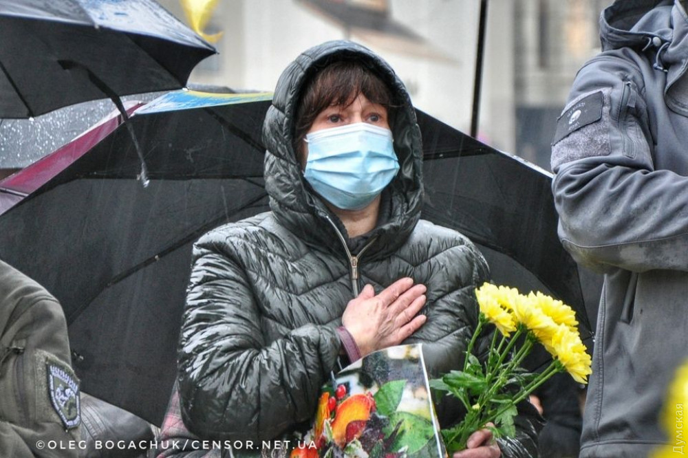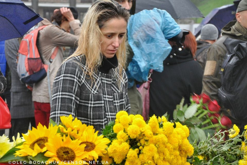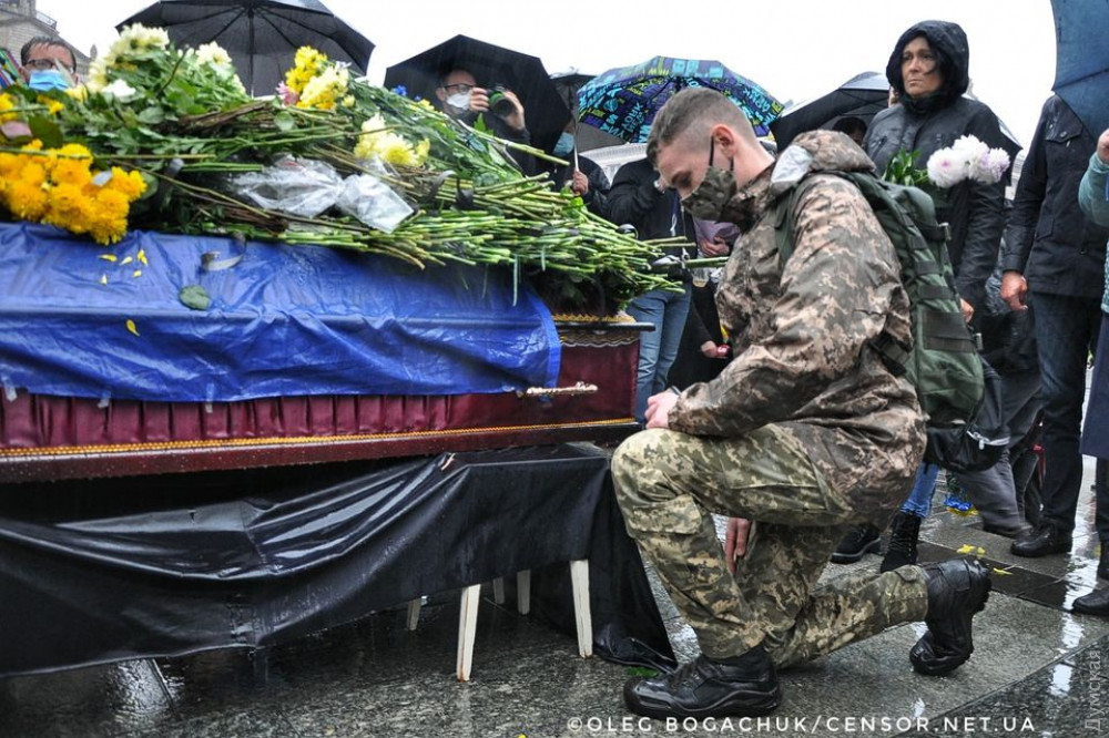 Как сообщают участники церемонии, несмотря на дождь, на церемонию прощания пришло больше сотни человек — ветераны АТО, родные бойца, активисты и неравнодушные киевляне.