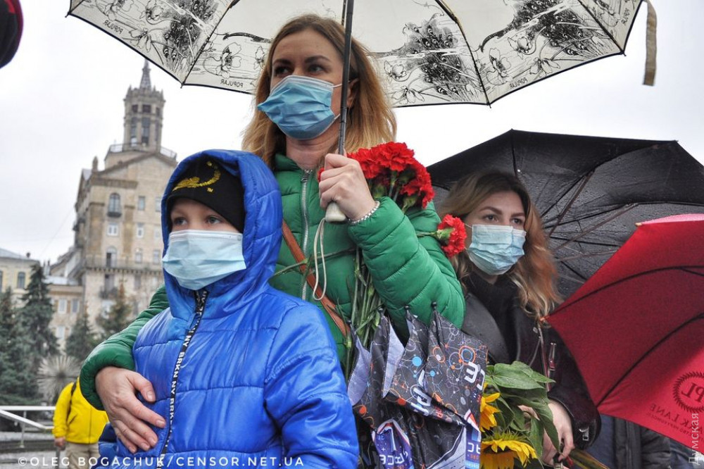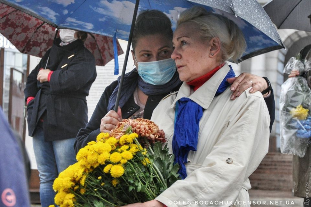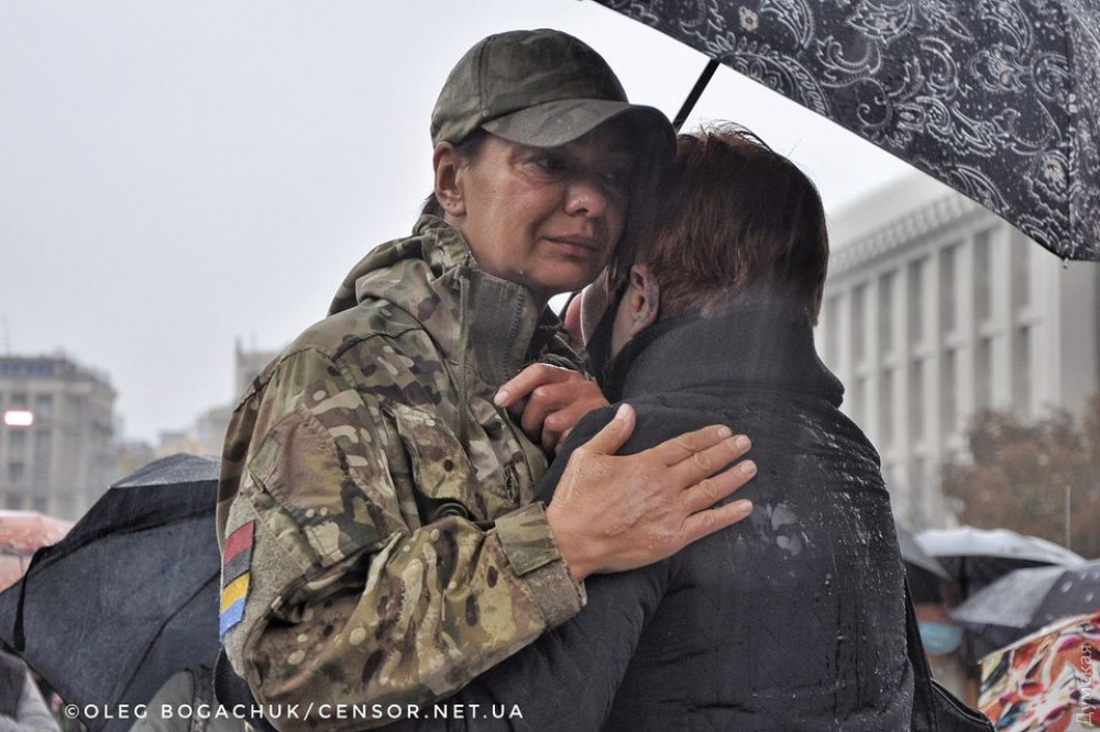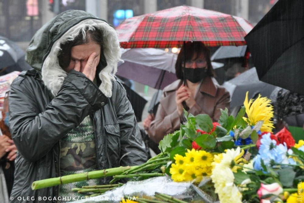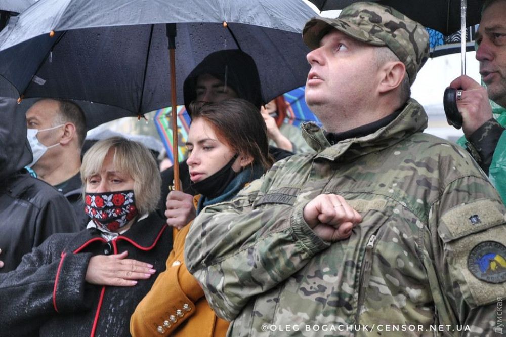 Как сообщают участники церемонии, несмотря на дождь, на церемонию прощания пришло больше сотни человек — ветераны АТО, родные бойца, активисты и неравнодушные киевляне.