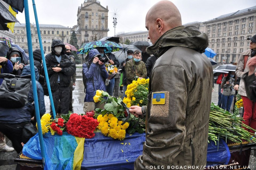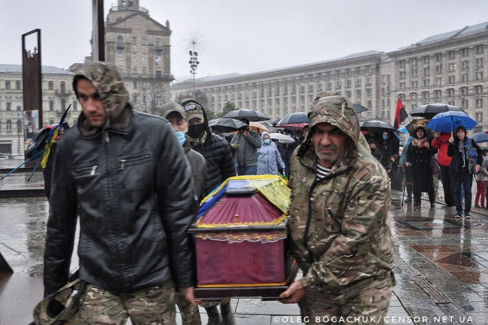 С ветераном АТО Николаем Микитенко, который в ночь на 11 октября поджег себя в центре столицы в знак протеста против политики капитуляции, простились в субботу на Майдане Независимости в Киеве.