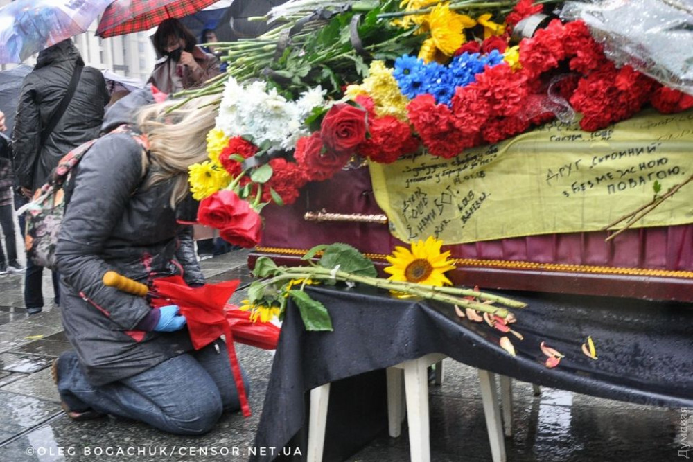 Прощание происходит на том месте, где Микитенко, в униформе с боевыми наградами, совершил самосожжение. Это сучилось в ночь на 11 октября