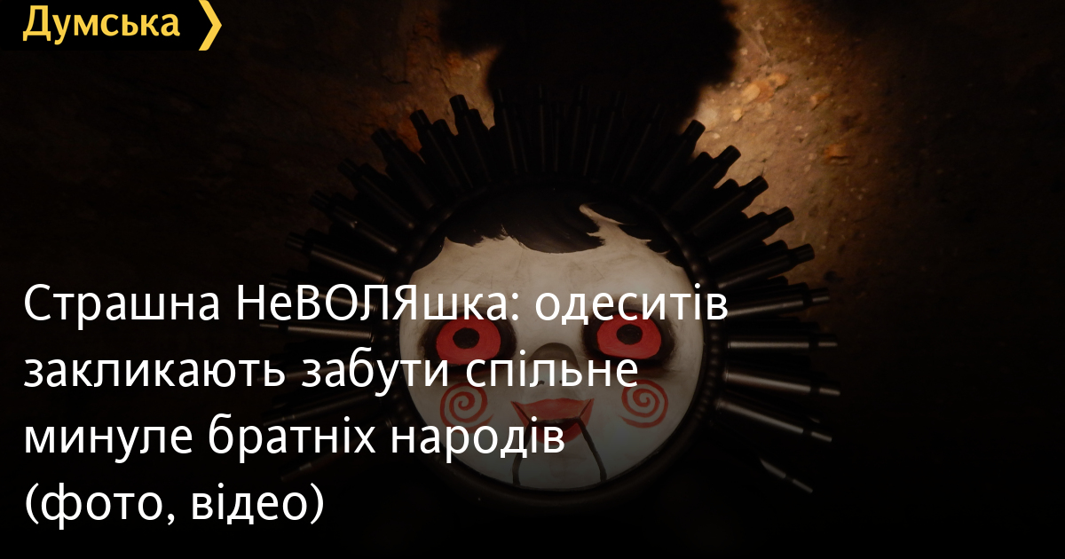 Страшна «НеВОЛЯшка»: одеситів закликають забути спільне минуле «братніх» народів (фото, відео)«неВОЛЯшки» — вже не іграшки, а нагадування про те, що навіть те, що здається звичним і майже рідним, насправді є згубним. Художниця Анастасія Бас представила лякаюче чесну виставку, де радянські ляльки позбавляються масок і постають в образах чудовиськ, що відображають війну, російську агресію і розрив зі спільним минулим. Пропустити таку експозицію наш Дмитро Жогов, звичайно ж, не міг. «НеВОЛЯшка» — це проєкт Анастасії Бас. Вона взяла дитячі радянські неваляшки, або «Ваньки-встаньки», і здерла з них маски. Направила прожектор на їхні оскалені морди. Мене чесно дістали вже поети, які пишуть про метеликів. І музиканти, які складають беззубі пісні про що завгодно, тільки не про війну. Художники, які малюють під обстрілами натюрморти. Якісь яблука? Серветки і ганчірки!? Навіщо ти малюєш сільнички? Як набридла ця група безхребетних, які вважають, що вони проживуть при будь-якій владі. Звичайно! Дощовим черв'якам все одно, хто ходить по землі. Хоч і окупант — ми тут, в гної, відсидимося. А тому творчість Анастасії мені сподобалася. Залітало, викликаючи злу радість. Анастасія, змішавши радянські дитячі неваляшки і знакові фільми жахів, під стукіт метронома показала реальність, яка вже три роки з нами. Збираючись на презентацію виставки її робіт, я написав Анастасії, що в наш час я не можу обіцяти прийти на виставку вчасно. Як, втім, і обіцяти, що доїду до неї на сто відсотків, теж не можу. Вона це запам'ятала. І презентацію почала з моїх слів. НЕВАЛЯШКА-МЕТРОНОМ Тік-так. Скільки я проживу? Тік-так. Уже три дні не виє тривога. Тік-так. Значить, потім буде ще гірше. Тік-так. Я їхав на виставку і проїжджав храм, де неподалік людині знесло голову осколком снаряда. Проїжджав бювет, біля якого — воронка. Проїжджав частково зруйнований будинок на Молдаванці. Проїжджав руїни. І обвуглені рани міста. Тік-так. Неваляшка зовсім чорна. І стукає метроном. Її очі — порожні, як вікна наших будинків після пожежі. Вона рахує секунди, як кроки на ешафот Беззвучно крутиться інша, величезна неваляшка з чорними плямами очей. Вона примхливо прикрашена, як дискотечна куля: на горбистих стінах підземелля — зайчики і плями від неї. Придивишся — це не блискітки, а скло. Все наше життя зараз — перебіжки по хрусткому битому склу. Від підвалу до підвалу. Від життя до смерті. Зі смерті — до життя. І ще неваляшки. Монахиня, у якої за пристойною маскою — паща хижого черв'яка. Вона символізує те, на що перетворилася релігія в Росії — при словах «Московський патріархат». Рот наповнюється їдкою слиною. Хочеться сплюнути. Я ще згадую цю Церкву: богослов Андрій Кураєв, Олександр Мень Але це примари. Залишився лише черв'як. У чернечому одязі. Ще матрьошка «Ніколи знову». — Ви бачили інтерв'ю з полоненими росіянами? — запитує Анастасія. — Це істоти без життя в очах, які просто не знають, куди вони йдуть. Не знають, що роблять. Для мене вони не тварини. Не люди. Я їх бачу всіх ось так!