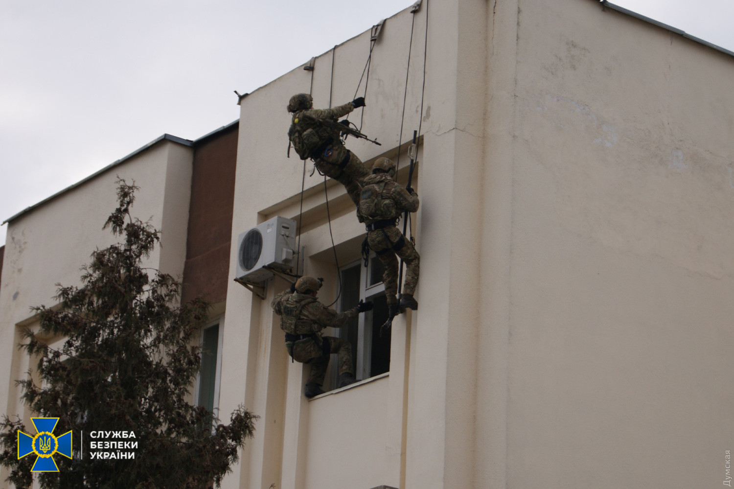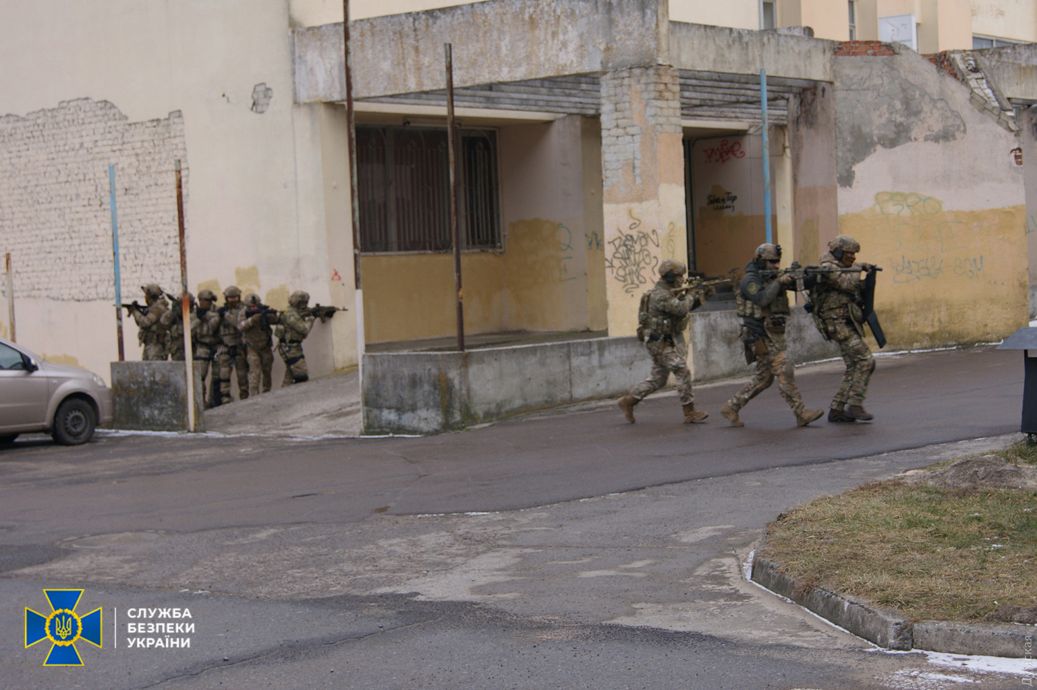 Нейтралізували «диверсантів» поблизу білоруського кордону: СБУ відпрацювала злагодженість Сил оборони (фото, відео)Контрдиверсійні тренування у прикордонних районах Рівненської області провели українські спецслужби. Мета таких навчань — підвищити рівень безпеки поблизу кордону з білоруссю, заявили в СБУ. Навчання тривали в умовах максимально наближених до реальних із залученням значної кількості особового складу Сил оборони, військової та спеціальної техніки, зокрема дронів. За задумом, «диверсанти», перевдягнені у цивільних, таємно проникли на територію регіону. Вони захопили будівлю міської ради у райцентрі поблизу білоруського кордону та взяли у заручники усіх працівників, які були всередині. Застосовуючи психологічний тиск і погрози фізичної розправи, умовні зловмисники намагалися змусити «потерпілих» співпрацювати із ворогом та перелаштувати роботу міськради на користь країни-агресора. Керівництво оперативного штабу зважилося на штурм. Під час спецоперації правоохоронці із залученням бійців ЦСО «А» СБУ знешкодили умовну ворожу групу та звільнили «бранців».