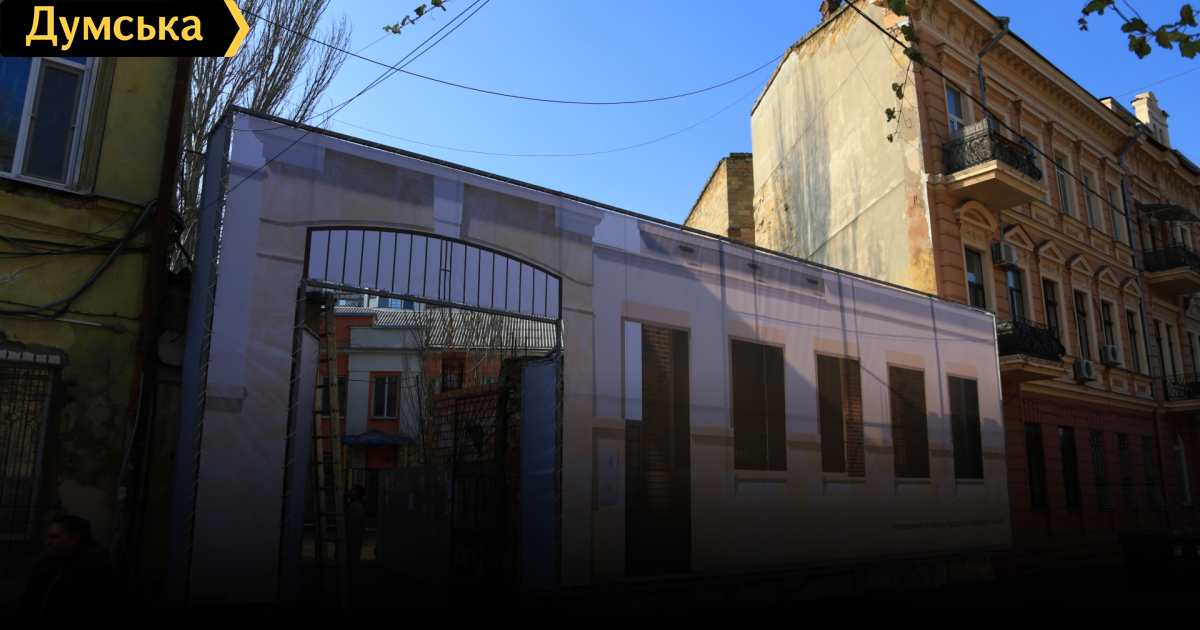 Строящийся особняк возле одесского «дома-стены» закрыли строительной сеткой