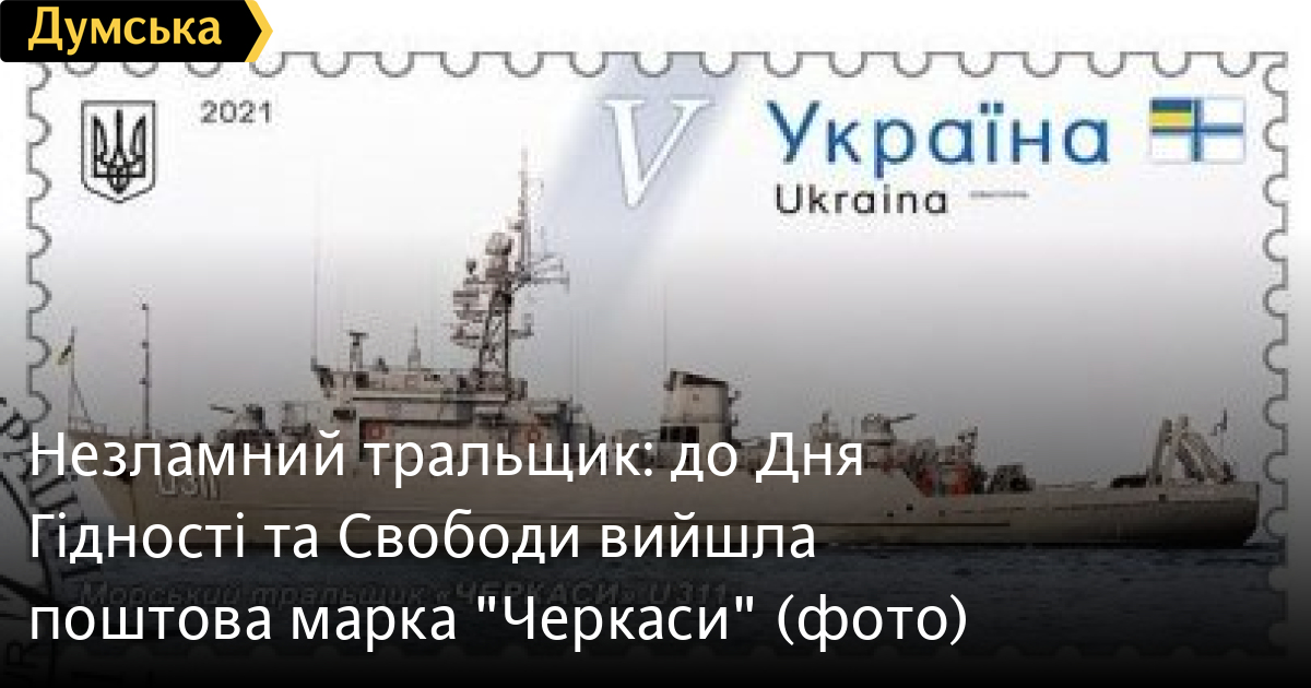 Як повідомляє прес-служба національного флоту, «Укрпошта» привітала українців з Днем Гідності та Свободи, випустивши в серії «Краса і велич України. Севастополь» поштову марку «Морський тральщик «Черкаси» U311».