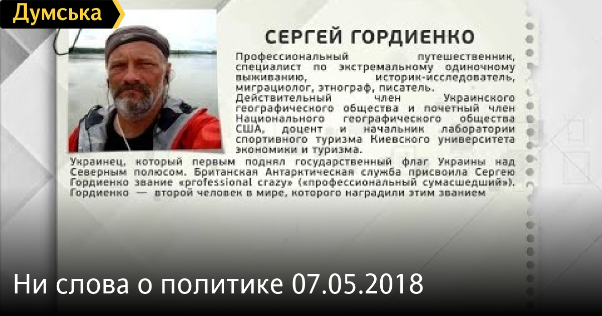 Сергей Гордиенко, путешественник СМЕРТЬ РОССИЙСКИМ ОККУПАНТАМ! Заметили ошибку? Выделяйте слова с ошибкой и нажимайте control-enter Думская ТВ. Ни слова о политике (День на Думской):