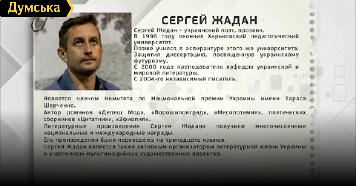 Тема: Презентация нового поэтического сборника Сергея Жадана.