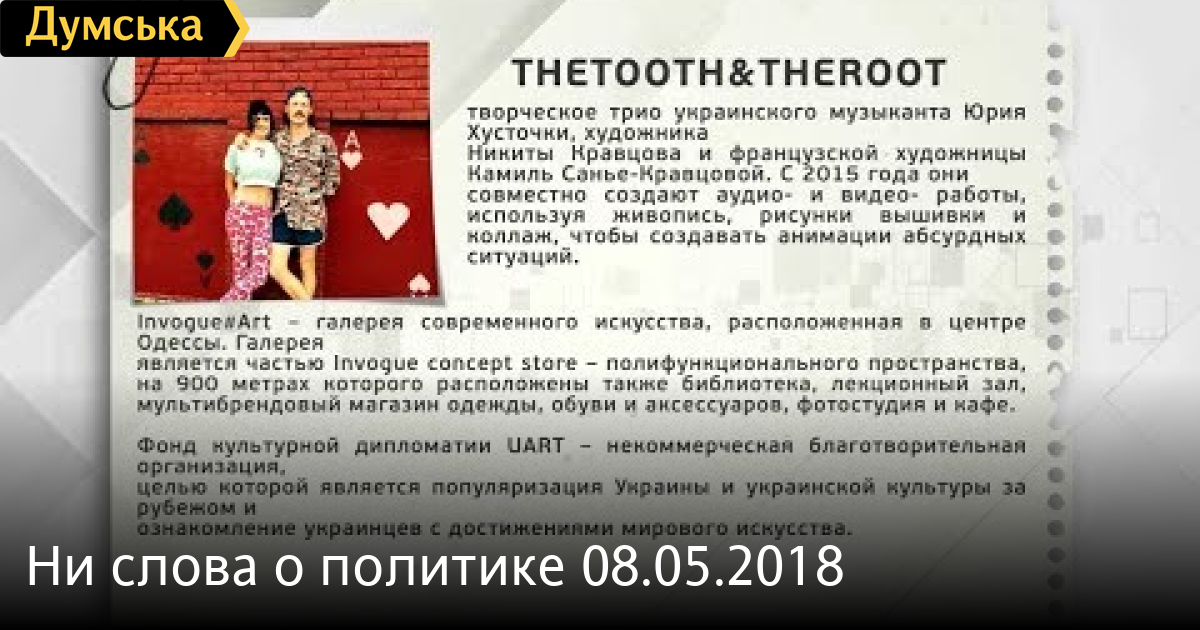 Никита Кравцов, художник Камиль Санье-Кравцова, художница СМЕРТЬ РОССИЙСКИМ ОККУПАНТАМ! Заметили ошибку? Выделяйте слова с ошибкой и нажимайте control-enter Думская ТВ. Ни слова о политике (День на Думской):