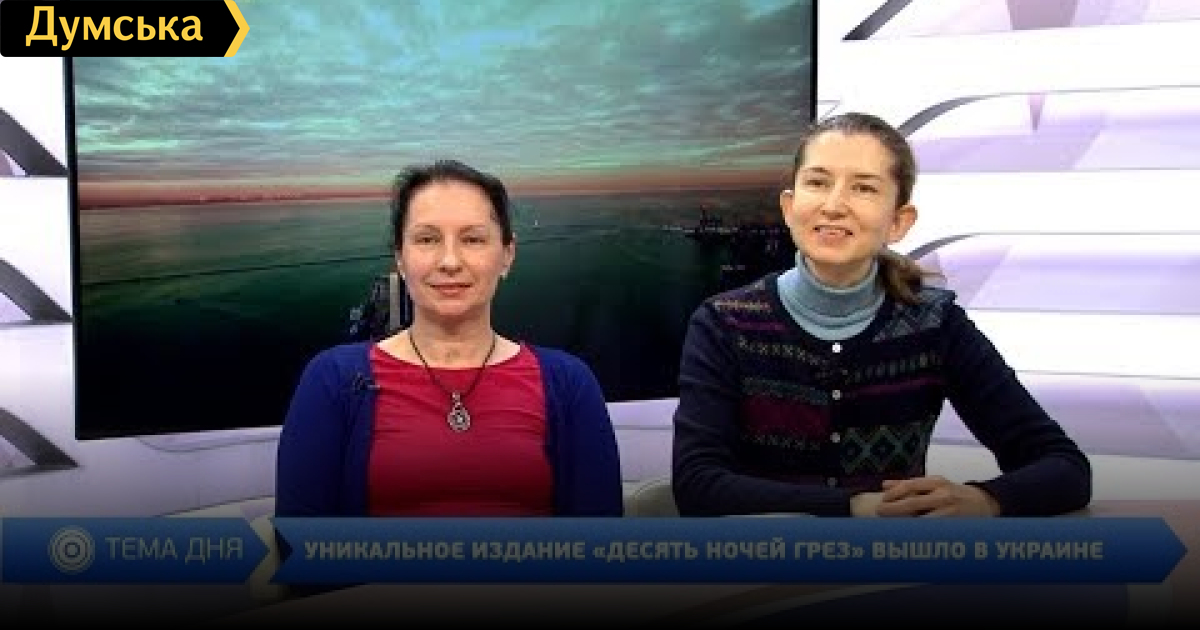 Авторская программа Марины Баканурской. В гостях Майя Димерли, писатель и Юлия Томашевская-Гарачук, консультант проекта Тема: Уникальное издание «Десять ночей грез» вышло в Украине