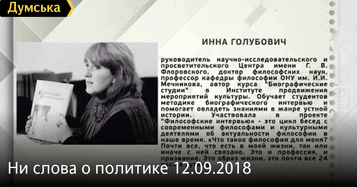 Инна Голубович — доктор наук, профессор СМЕРТЬ РОССИЙСКИМ ОККУПАНТАМ! Заметили ошибку? Выделяйте слова с ошибкой и нажимайте control-enter Думская ТВ. Ни слова о политике (День на Думской):