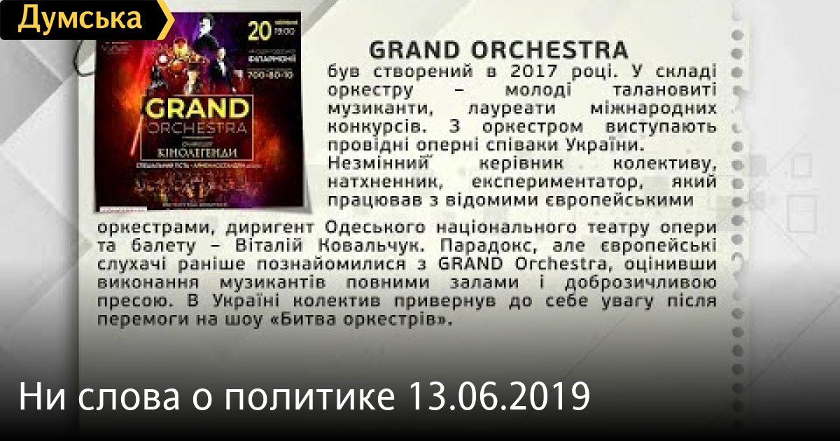 Виталий Ковальчук — диригент и Гаяне Арутюнян — основатель оркестра СМЕРТЬ РОССИЙСКИМ ОККУПАНТАМ! Заметили ошибку? Выделяйте слова с ошибкой и нажимайте control-enter Думская ТВ. Ни слова о политике (День на Думской):