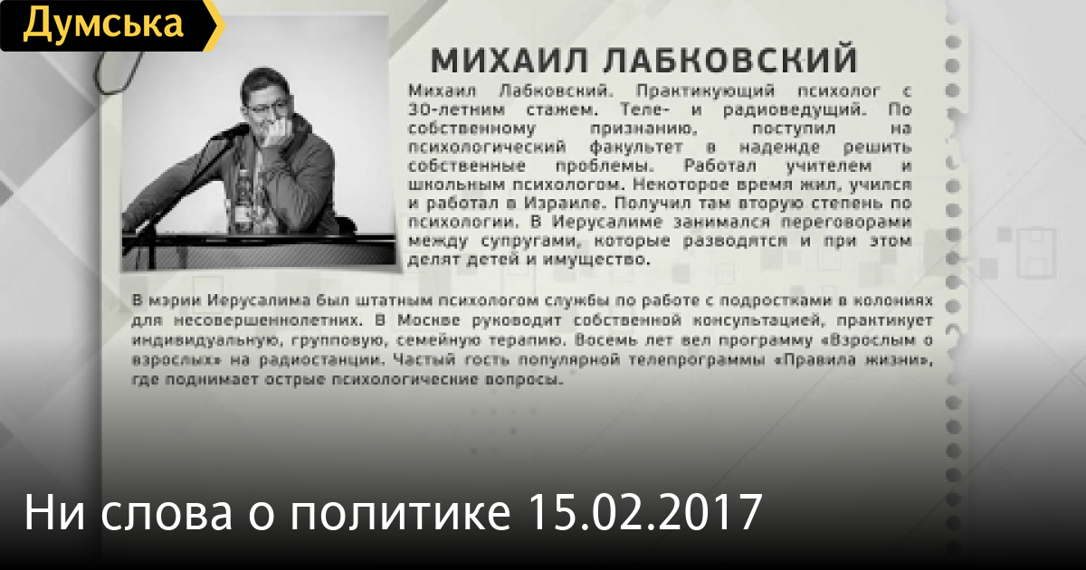 Тема: Михаил Лабковский научит одесситов радоваться жизни СМЕРТЬ РОССИЙСКИМ ОККУПАНТАМ! Заметили ошибку? Выделяйте слова с ошибкой и нажимайте control-enter Думская ТВ. Ни слова о политике (День на Думской):