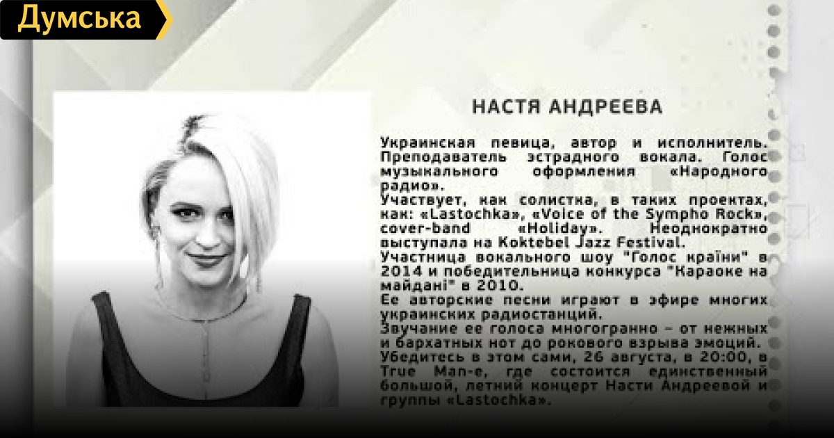 ТЕМА: КОНЦЕРТ НАСТИ АНДРЕЕВОЙ И ГРУППЫ «LASTOCHKA»