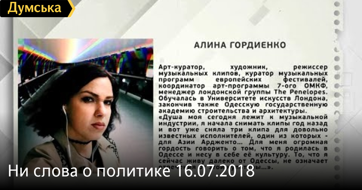 Алина Гордиенко, менеджер группы, режиссер СМЕРТЬ РОССИЙСКИМ ОККУПАНТАМ! Заметили ошибку? Выделяйте слова с ошибкой и нажимайте control-enter Думская ТВ. Ни слова о политике (День на Думской):