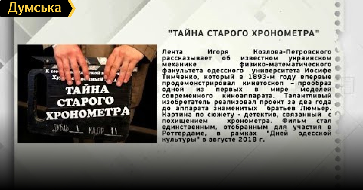 ТЕМА: ПРЕМЬЕРА КИНОКАРТИНЫ «ТАЙНА СТАРОГО ХРОНОМЕТРА»